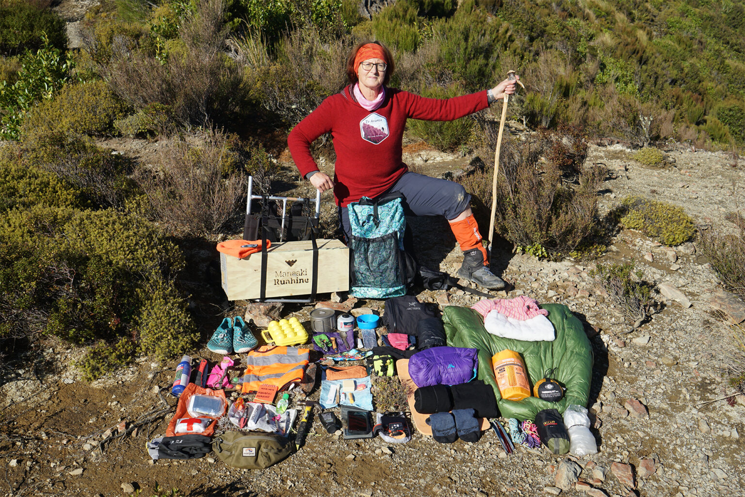 “My gear is a combination of homemade, op shop and expensive lightweight,” she says. “I keep organised with DCF (Dyneema Composite Fabric) bags made from DIY kits bought from Ripstop by the Roll. “Trapping trips involve hours in a river or along the tops. In summer this can be done as day trips, lightening the load. My overnight base weight is 6.6kg, plus tools.”