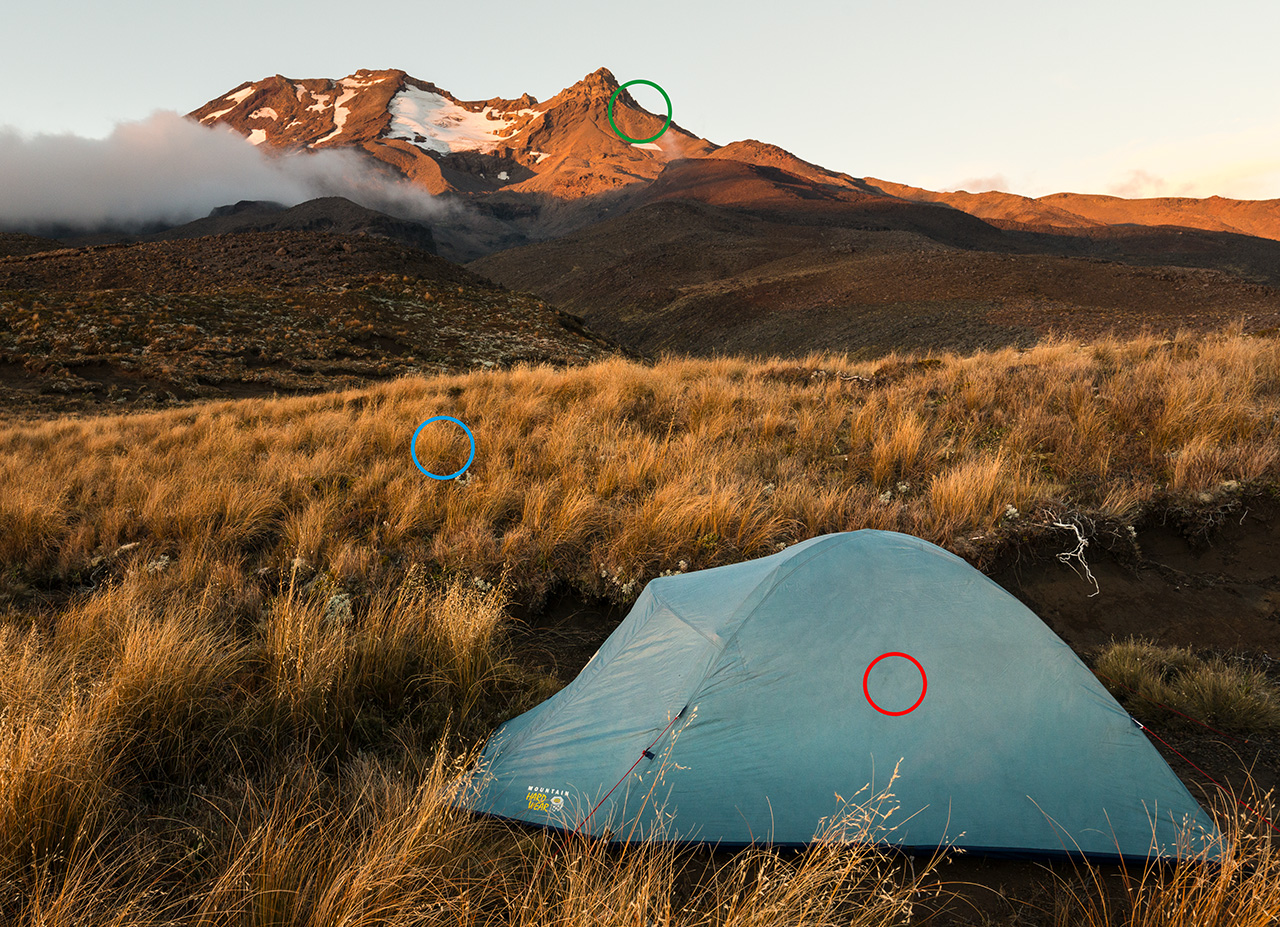The tent does not have to be the only focal point in your image. If you are tramping with friends, include them in the shot too. Add a sense of camp life by including people sitting around a billy or gazing at the view just as the sun breaks the horizon.