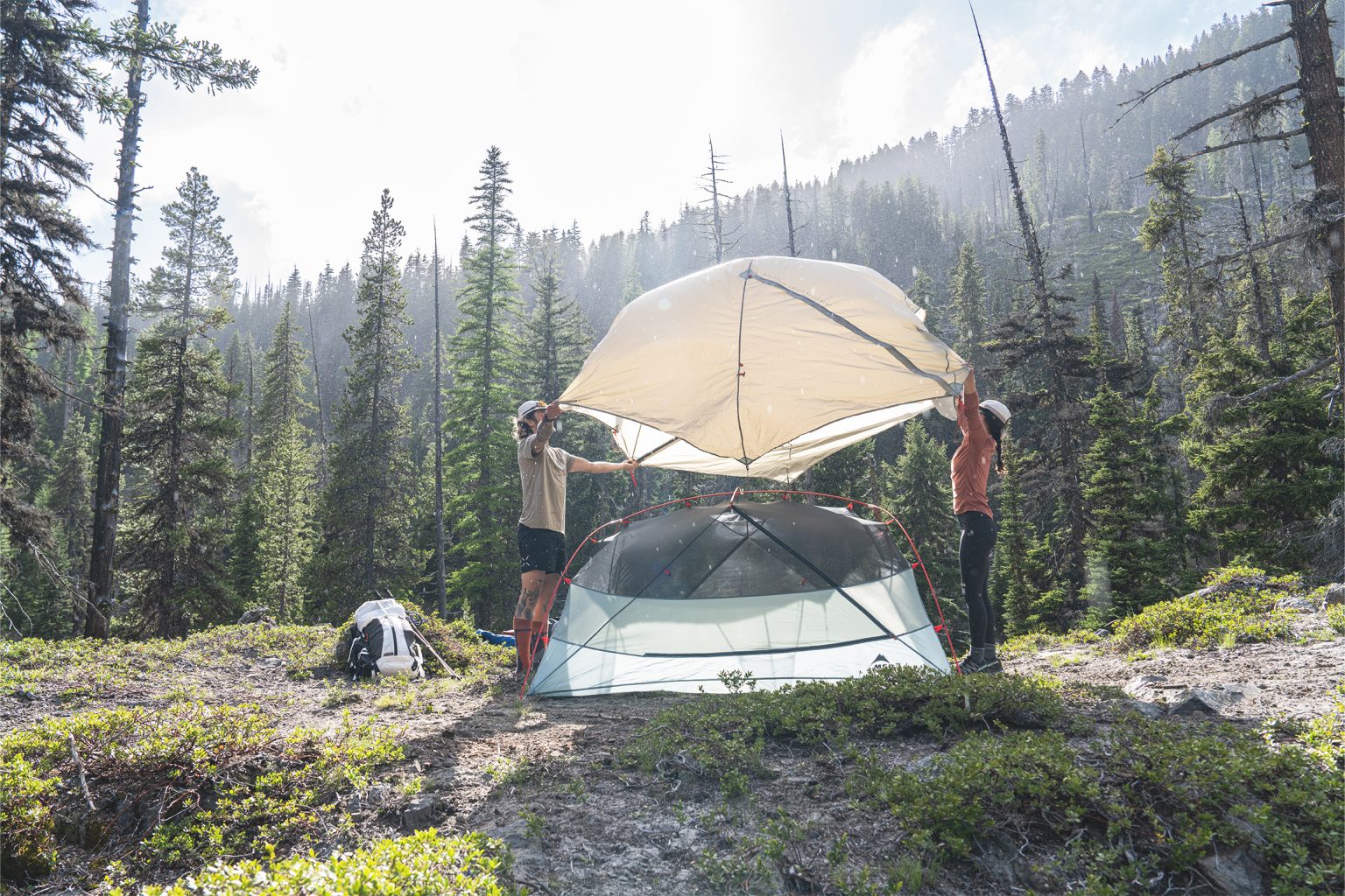 It has two entrances and vestibules, super durable metal corner hardware, kickstand fly vents for extra airflow and a roll-top stuff sack.