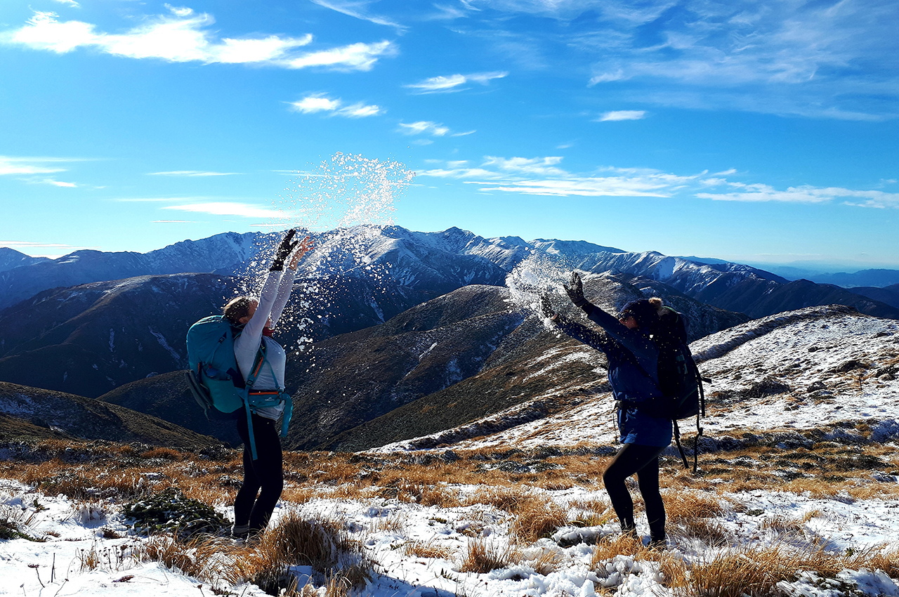 Caroline Mellsop and Lydia Smith enjoyed the snow in Ruahine Forest Park