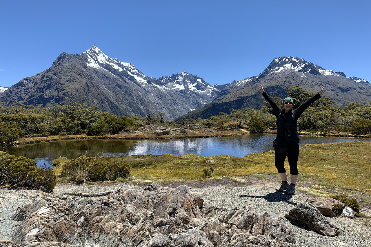 Gabrielle Grant embraced the mountain views from Key Summit, Fiordland National Park.